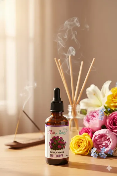Nuestra fragancia premium Mil Flores tiene un aroma floral dulce, delicado y armonioso que combina distintas notas florales para crear una esencia elegante y encantadora. Ideal para dar un toque romántico y femenino a tus productos artesanales.