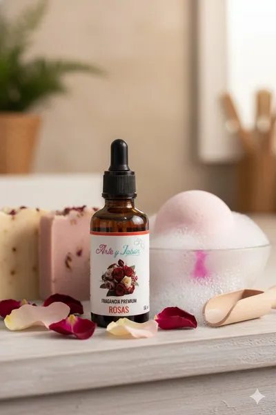 Nuestra fragancia premium Rosas tiene un aroma floral, delicado y elegante que transmite romanticismo y frescura. Ideal para dar un toque sofisticado y femenino a tus productos artesanales.