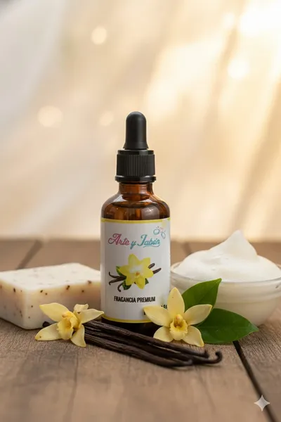 Nuestra fragancia premium de Vainilla tiene un aroma dulce, cálido y envolvente que transmite sensación de hogar, suavidad y bienestar. Ideal para dar un toque delicado y elegante a tus productos artesanales.